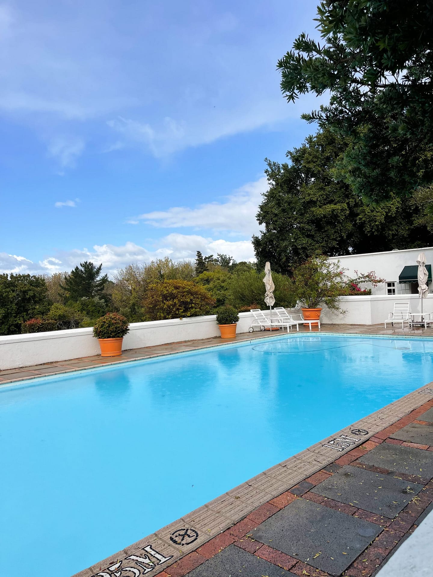 The Hohenort pool is adjacent to the Hohenort building, which overlooks the hotel’s vineyard. In contrast, the smaller walled-in Cellars pool is in a secluded part of the hotel’s grounds near the main Cellars building.