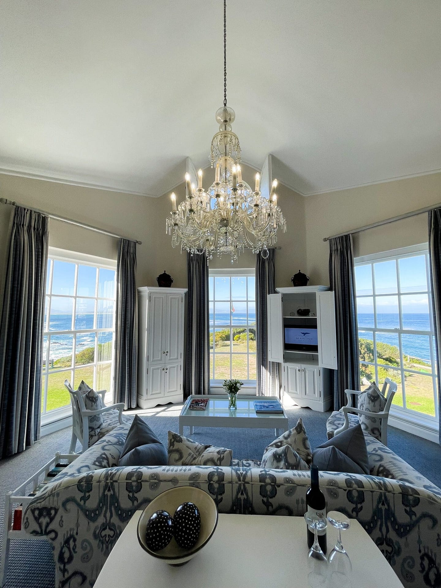 Exquisite Accommodation: The marine has 40 individually themed rooms and suites, each with unique views and amenities. The Honeymoon suite features a large bay window, a lounge area overlooking Walker Bay, and a loft bedroom with views of the gardens towards the sea.