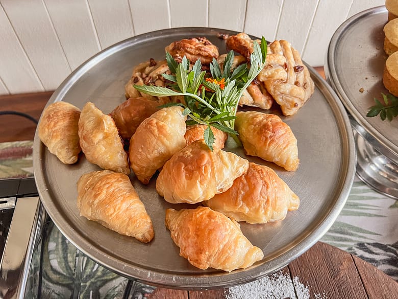 Unsere Zeltsuite lag unter schattigen Bäumen – luftig, ruhig und genau richtig. Drinnen wartete eine gekühlte Flasche Sekt, feine weiße Bettwäsche und alles Nötige – nicht mehr, nicht weniger. Fenster zum Öffnen hätten wir uns gewünscht, aber letztlich zog es uns ohnehin nach draußen – auf die Terrasse, mit einem Drink in der Hand und dem Luxus, einfach nur da zu sein.