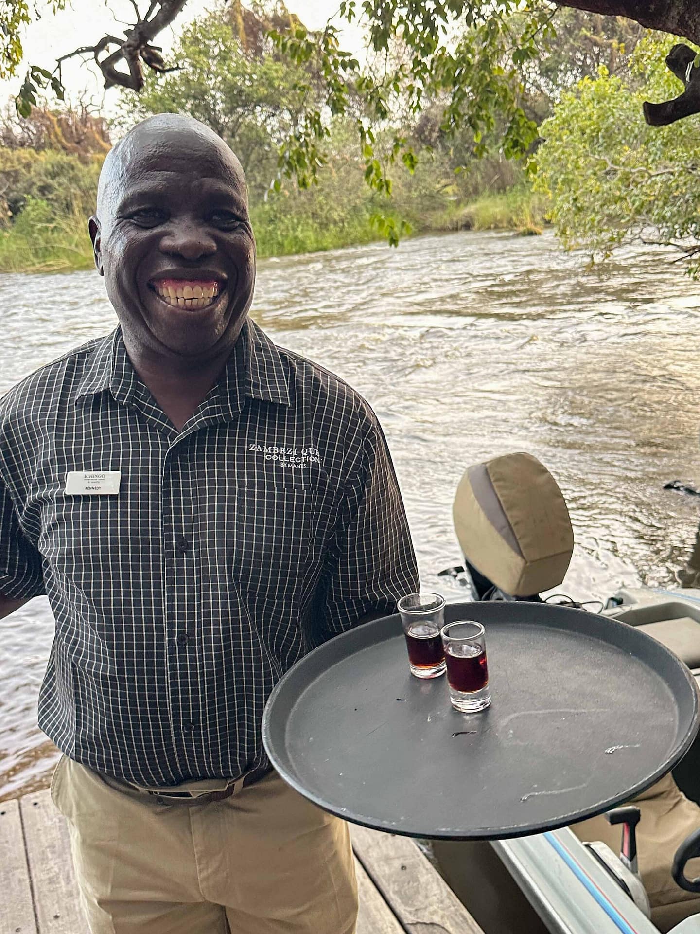 Am Bootsanleger der Ichingo Chobe River Lodge angekommen, waren wir bereits verzaubert. Das laute Rauschen des Flusses, das Grunzen der Flusspferde – die Zivilisation rückte in weite Ferne. Und da stand Kennedy – Lodge-Manager, Gastgeber und Seele des Hauses – mit einem breiten Lächeln, das uns sofort wie zu Hause fühlen ließ.