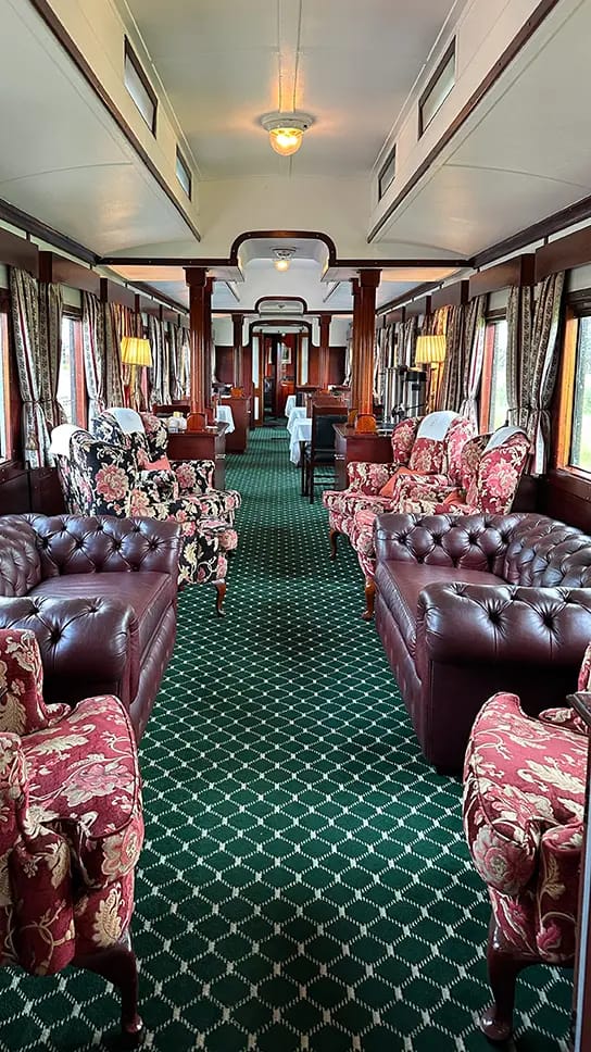The observation cart offered panoramic views of Africa’s ever-changing landscapes. The lounge carts were cosy spots to sip a cocktail and engage in delightful conversations, while the dining cart whisked us back in time with its polished silver and elegant service.