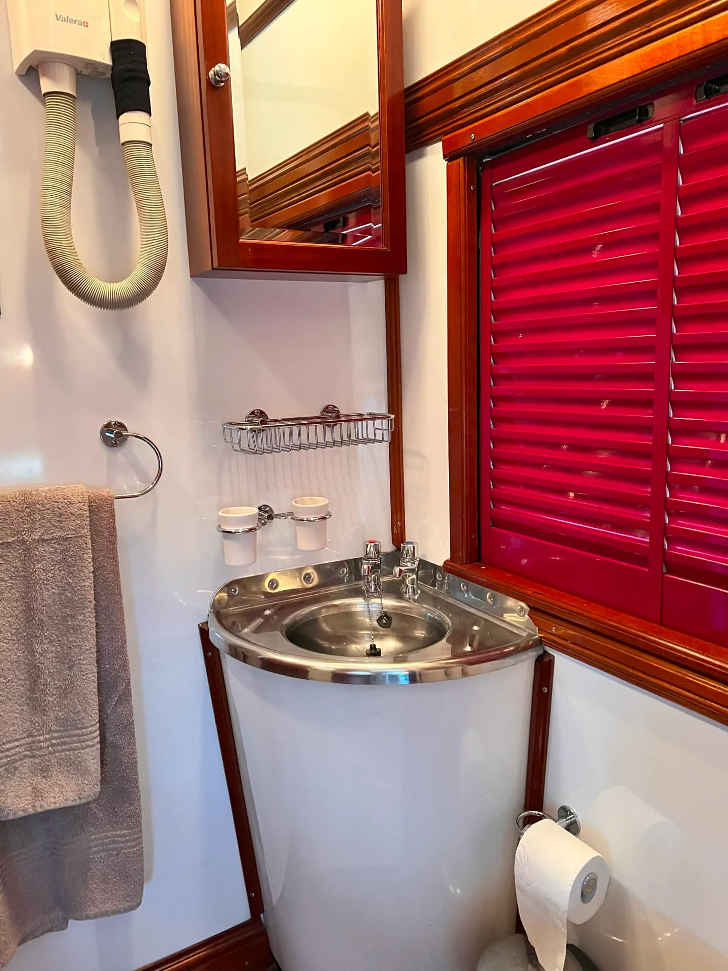 The en-suite bathroom, though compact, was appropriately fitted with a shower, a tiny basin and a clothing cupboard for essentials like evening dresses or suits—something not always guaranteed in train travel.