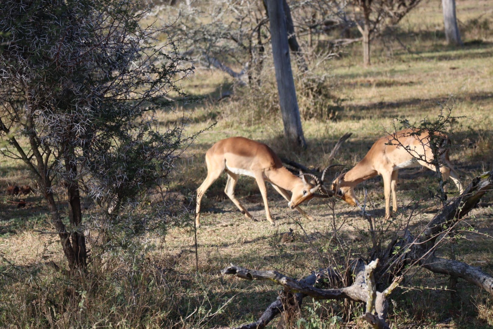 Zunächst müssen wir erklären, dass die Camps zwar innerhalb des Parks liegen, aber eingezäunt sind und über ein zentrales Zugangstor verfügen. Das bedeutet, dass Wildtiere nicht durch das Tor des Camps eindringen können, obwohl kleine Antilopen manchmal frei in den Camps herumlaufen.