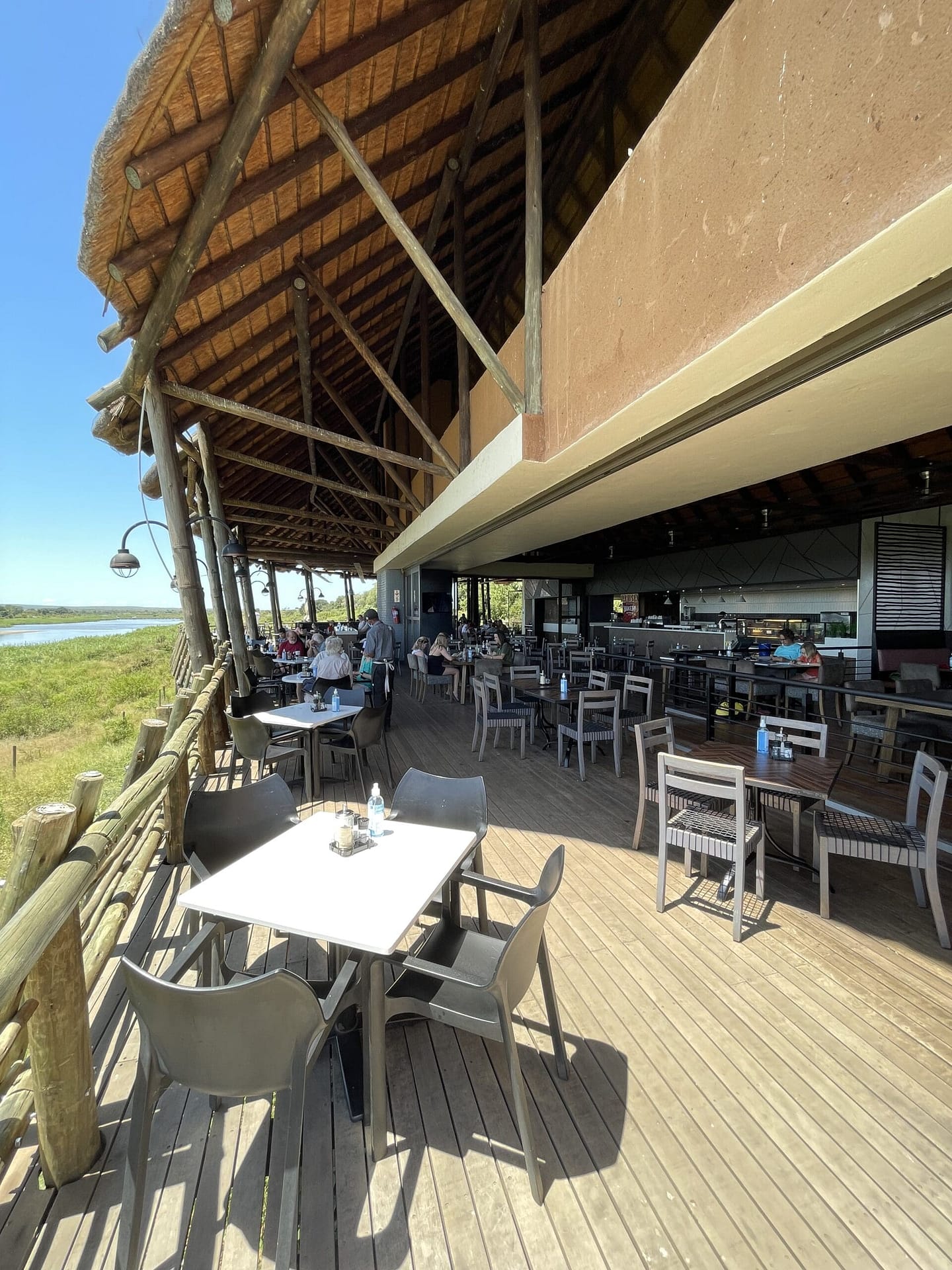 Depending on how much you see and how often you stop, this is the perfect route to take if you want to be in time to prepare your bush breakfast on a gas braai while admiring the wildlife up close. Beneath the large, thatched roof, you can enjoy many traditional dishes (braai ‘wors’, ‘pap en sous’, steak, chops) or more classical ones prepared by the local chefs.